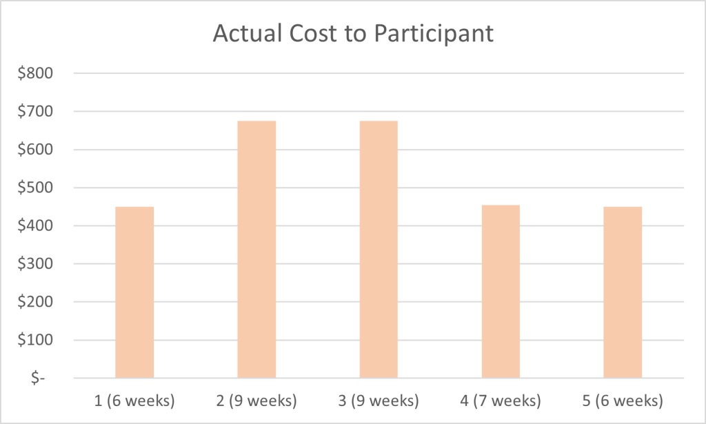 In addition to this tuition subsidy, 1 in 3 participants request additional financial aid – nearly $63,000 is awarded each year!